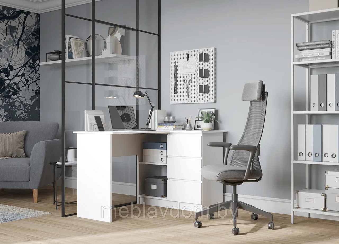 Угловой письменный стол Мори — это изящное и практичное решение для интерьера, сочетающее современный дизайн и функциональность. Он легко впишется как в детскую или подростковую комнату, так и в домашний рабочий кабинет или офисное пространство. Благодаря нейтральному и сдержанному цвету, стол гармонично сочетается с различными элементами обстановки.